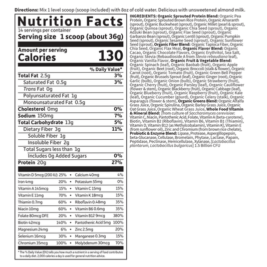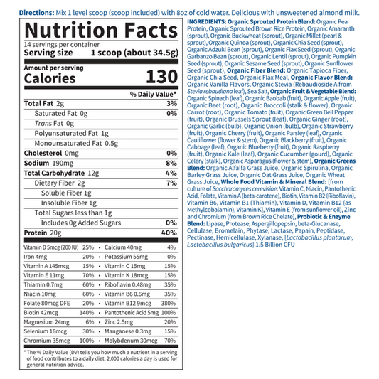 Raw Organic Meal Shake & Meal Replacement Vanilla Powder